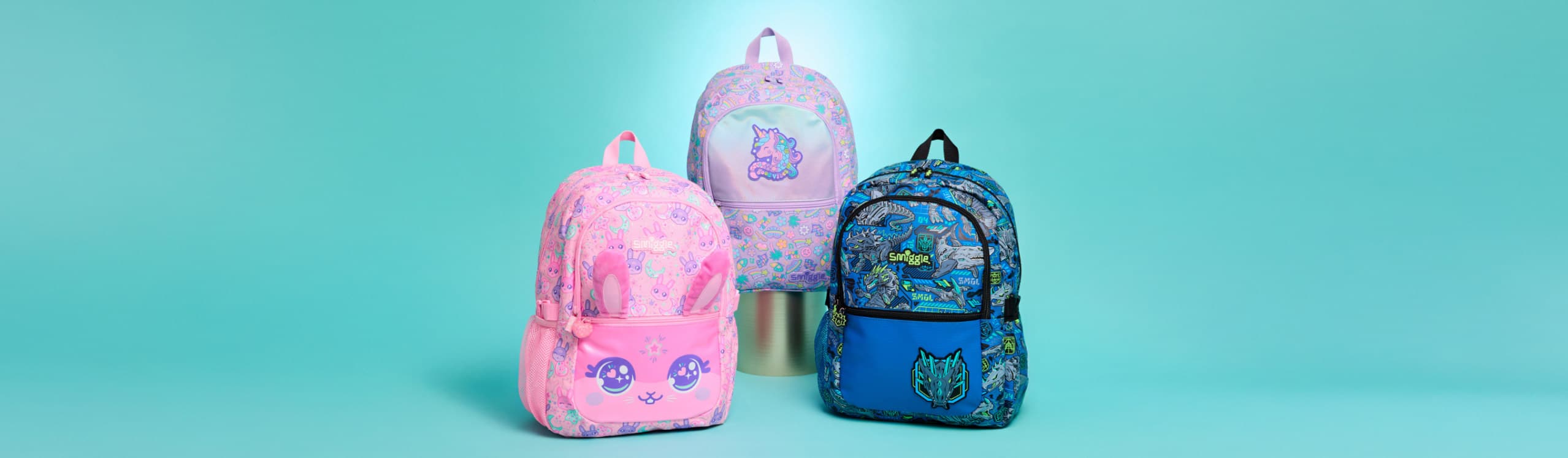 Eye-catching heroes of the schoolyard, Smiggle's kids backpacks are perfect for use at school or on a day trip. And with so many different kids backpack styles and designs to choose from, it’s going to be tough for our Smigglers to pick a favourite! The kids are going to adore our backpacks featuring fun badges, special applique and embroidery details! The vibrant colours and fun designs are sure to win over even the fussiest judges. Smiggle kids backpacks are perfect for school, sports or any activity and are packed full of features you need in a school bag like tonnes of storage and zipped compartments, water bottle holders, padded adjustable shoulder straps and laptop compartment.